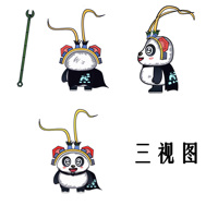 元素灵感来源:头饰,类似于古代传统文化戏曲的发冠;其主体为熊猫,熊猫百变而不厌,易于大众接受;扳手,及头饰齿轮,螺帽耳朵来源于应用于技能,及我们学校校徽的图案灵感。