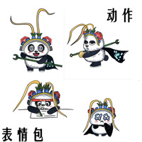 元素:主体熊猫 头戴齿轮状头冠,并且有螺帽状的耳朵,头戴雉翎,并且手持竹子所做的扳手状手杖。