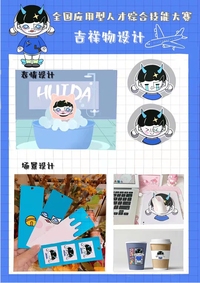 珂珂是结合机器人元素为创造,大大的眼睛,头部有星星做装饰具有美好的寓意,是亮点,是中国代表元素。蓝色畸角和头盔为接收信号和转换能量。色彩运用蓝白色调,整体形态活泼,富有科技元素,寓意有智慧,和平,创新等,便于延展和实际应用。设计尺寸统一使用A4画布,让成品更加整洁有序。