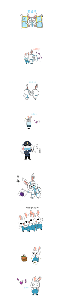 作品名称为“战役兔子军”,紧密结合“疫”起行动,“情”暖人间的主题。以可爱的兔子形象为主体来演绎现实生活中那些冒着生命危险奋斗一线的英雄们。作品以戴口罩、少出门、勤通风等元素来设计,响应国家号召,做好自己力所能及的事情,保护自己也是保护他人;有用注射器杀死病毒;作品中有护目镜与口罩元素代表着一线的医护人员,医护人员通过奋斗和牺牲,守护了全国人民。疫情当前,作为一位普通人,能做的最大努力和贡献就是尽量减少外出,阻断疫情的继续传播。“家”是我们每个人最坚固的堡垒。在疫情期间,普通的民众都在逃离病毒,远离病毒,然而各地支援武汉的医护人员,火神雷神山建设者,警察,社区工作者,外卖快递小哥,各类志愿者……为了让我们更好的远离病毒,都在第一线做着贡献,展现出一例例最美逆行。同时通过作品呼吁大家共同敌忾,战胜病毒!只要我们科学有序防控,坚决遏制疫情扩散,这场疫情防控战争的胜利就在前方了。激励人民坚定信心,同舟共济,一起努力抗击疫情。赞美逆行者,最可爱的人们!其次,创作这个作品来感谢每一位奋战在一线的医护人员,感谢在一线执勤的警察同志,和我们可爱的解放军们,以及每一位为抗击疫情力所能及付出的人们。中国加油!