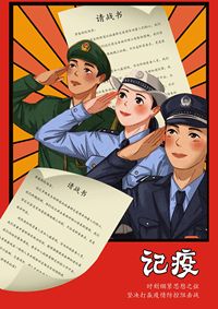本系列设计名称为《记“疫”》,同音于记忆,疫情。灵感来自于在新冠状病毒疫情下现实生活的状况,奋斗在一线的医护人员、民警、基层干部以及志愿者们,他们日夜奋战,付出巨大的艰辛。以一线工作者和病毒为设计点,色彩选用了象征中国吉祥的红色,再加上紫色黄色与蓝色的搭配,更容易凸显内容,视觉上产生强烈对比。第一张讲述一线工作者与病毒抗击的艰难过程,体现抗议不易。第二张表述在大家团结合作拼搏下逐渐控制疫情,向医护人员、民警以及志愿者表示真挚的致敬。设计主旨是表达医务工作者奔赴一线对家乡亲人的思念,对美好事物的期盼以及战胜疫情的决心和走向美好未来的渴望。