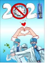 本作品围绕“疫”起行动,“情”暖人间为主题,发散思考。以全球人民同心抗疫和宣扬奋战在一线的工作人员的不怕牺牲精神为主要思路进行设计。旨在宣扬敢于担当、不怕困难的精神。作品内容主要是有上中下三部分构成,上面部分是以病毒和疫苗组成的年份,突出主题背景年份;中间部分主要以心形为主要元素,暗示了全球人民同心抗疫;下面部分主要以病毒和抗疫工作者为主要元素,宣扬了奋战在一线的工作者们那种不怕困难,舍己为人的精神!作品主要是为了宣扬“疫”起行动,“情”暖人间的思想,倡导听党话、跟党走,众志成城、共克时艰的理念。