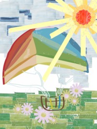画面中的主体部分,太阳,乌云,天空和热气球都由在疫情防控中扮演重要角色的口罩拼接而成,口罩既代表中央提倡的措施,又代表全民自护的努力,同时也是全民集体感社会责任感的体现和表达。乌云表示疫情,遮住了太阳也遮住了色彩。色彩表示希望和生命,太阳表示为人民服务的先锋,先锋不仅指医生护士,也包括所有为防止疫情扩散而努力的我们,冲破了疫情笼罩下的沉寂,感受到民族团结带来的温暖,让街道重现生机,让生活重现活力。让我们对疫情的早日结束,充满了信心