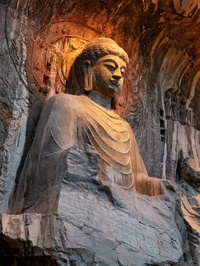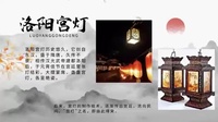 第三张图介绍的是洛阳宫灯,洛阳宫灯是一种特色传统工艺品,元宵佳节常见的装饰品。品种繁多,具有浓厚的地方特色。常见的有白帽方灯、红纱圆灯、六色龙头灯、走马灯、蝴蝶灯、二龙戏珠灯、罗汉灯等等。尤以红纱灯最为有名。其造型优美,宜书宜画,撑合自如,易于保存。既可用于喜庆饰品,点缀升平;又可作艺术宣传,表彰新风。2008年入选第—批国家级非物质文化遗产扩展项目名录。洛阳宫灯历史悠久,它创自东汉,盛于隋唐,久传不衰。相传汉光武帝建都洛阳后,于元宵佳节在宫廷里张灯结彩,大摆宴席,盏盏宫灯,各呈艳姿。后来,宫灯的制作技术,逐渐传出宫廷,流向民问。"宫灯"之名,即由此得来。隋炀帝大业三年 (607年),迁都洛阳后的第一个元宵夜,即在洛阳新宫内外和天津街上陈设百戏,遍饰宫灯,饮宴畅游。隋唐时期,每逢元宵佳节,洛阳全城家家宝灯高挂,处处明灯璀璨,人人提灯胜游,盏盏争奇斗艳。这种风俗,风靡全国,波及海外。宋以后,洛阳屡遭战乱,元宵节逐渐失去了日时的风采,但宫灯制作技术,一直流传至今。