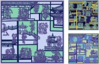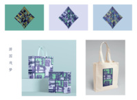 游园戏梦的灵感来自昆曲的角色造型与戏台构造,设计使用中国传统剪纸的形式将戏曲人物逐一呈现在全新构建的戏台空间内,戏台既是园中景,又 有景中人,是园林与戏曲美学的集中体现。在作品的设计中,提取戏曲最经典的角色造型,融汇不同题材的戏曲桥段,进而将传统审美趣 味和全新的图案构建结合。这也是对戏剧中虚实相生是这种模糊化意境呈现的一种方式,这种模糊化的艺术表达实现了表达事物、故事情 境与展现理性的系统交融,也是对传统戏曲与当代设计的一次设计探索。