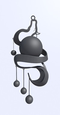作品以抽象的奔马仰头冲向天际,身体以球形松石为环绕盘旋而上,自由奔放犹是自由的天马翱翔天际。四条松石吊坠流苏寓为马的四蹄,在佩戴中随着步伐来回摆动,好似飞天的灵动。
