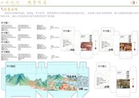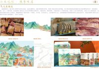 山水记忆·德昌味道——建昌板鸭州级非物质文化遗产主题包装设计简介:一个好的包装设计可以吸引客户的眼球,那么产品也会得到注意和认可,这样就可以在消费者购买之前向客户提供正确的信息,能够让客户对产品、包装留下深刻的第一印象。所以本产品包装主画面整体为一副人物与景物并存的山水画,远处以螺髻山, 德昌钟鼓楼为背景,体现了德昌县的山景秀丽,龙门的出现也寓意着德昌县会如同鲤鱼跃龙门一般快速发展,迈上一个新台阶;近处展现了德昌县人民农忙时期的辛勤劳作,明前采茶,秋收香稻,为我们展示了丰收的景象, 表现了人民丰收的喜悦,河面上诗人乘着扁舟,也象征着德昌县的人杰地灵,整幅图构成了德昌县的一个缩影,美景、良田沃土、好山好水好风光更是突出了德昌“天府第二粮仓”的生态环境优良,有了好水美地的滋养,建昌板鸭自然健康美味,还将板鸭细节图和梯田图等元素运用其中,将建昌板鸭与德昌山水、梯田等多种元素有机融合,突出产品特色的同时更向消费者传递出健康高品质的食材缔造出专属于建昌的美味佳肴这一理念。努力实现通过美味佳肴传承中国传统文化,保护非物质文化遗产深远目标,最终达到保护非物质文化遗产的同时带动经济发展实现双赢的美好愿景。