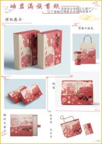 而本作品就岫岩满族剪纸这一非物质文化遗产进行设计,其设计的是一系列岫岩当地的包装,在包装画面中将岫岩满族剪纸的三幅代表作品《千蝶图》、《狮子戏绣球》和《戏虎图》作为设计的主体,辅以岫岩当地的知名建筑景观——龙潭湾、清凉山和岫岩水巷,表现出当地特色。并且添加了装饰纹样,装饰纹样是剪纸中普遍运用的元素,岫岩满族剪纸在东北满族剪纸的基础上,融汇了黄河流域民间剪纸的造型纹饰语言,形成了以锯齿纹和月牙纹为主,以太阳纹、柳叶纹、水滴纹、勾云纹、涡轮纹、朵花纹等为辅的装饰纹样。同时,为体现岫岩满族的特色,加入了与满族相关的文化元素——传统的满族面具、图腾等,将多种元素融入画面,并以剪纸的形式表现出来,使画面达到统一。