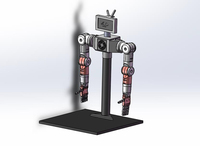 外观设计方案如下:机器人主体采用表面光滑的树脂材料,黑色亚克力底座与铝制支撑杆衬托机器人的白色主体,小臂的红色增强观感,小电视的造型属于头部,使得外观设计更加协调。