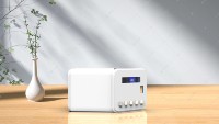 (8)、颜色搭配:采用白色为主调,蓝色为点缀,中间按有显示屏,整体融洽和谐,沉稳且不失高级感。