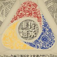 作品采用红、黄、蓝三原色组成的具有稳定性的三角形构图,将中国非物质文化遗产中具有一定代表性的的红色剪纸艺术、金黄色花丝工艺、蓝色青花工艺置入三原色构图之中,并分别采用我们民族传统图案之龙、凤、百花图案为基本的设计元素,来寓意表达我们“匠心民族”稳固发展的理念。龙代表着我们是龙的传人,骨子里流淌着飞龙般进取、创新、独立的民族血液,凤凰代表着民族的浴火重生、展翅飞翔精神,百花代表着国家繁荣富强、生机勃勃、和谐发展的如愿景象。整体上用立体裁切的报纸堆砌手法为衬托,代表着中国非物质文化遗产历史的传承与发展,同时报纸有宣传的作用,以此再次号召广大中华儿女,不忘初心,勇往直前,将中华的民族非物质文化遗产及所蕴含的民族精神传承并发扬光大。