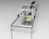 本项目针对我国大部分水泥生产企业在水泥包装袋装车环节,人工作业成本高、效率低且水泥包上沾附的固体粉尘给装车人员的身体健康带来极大伤害,增加了呼吸病的发生率的问题,提出了框架式水泥装车码垛技术,设计发明了一种由衍架、带式输送机、转向装置、水泥包码垛结构以及上下移动结构组成的框架式水泥装车码垛装置。本项目一方面提高水泥包的装车效率,满足其对自动化的需求,另一方面保证工作人员的身心健康。该技术创新性地解决了水泥包装袋运输和装车一体化问题。