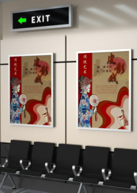 设计目的:皮影戏是中国非物质文化遗产,与灿烂的中国文明历史紧密相连,中国非物质文化遗产不经记录了过去,也是我们文化自信和尊严,是我们的族群凝聚力。我们不仅感受到这些“非遗”的文化魅力和引力,同时也要弘扬中国传统文化,建设精神家园。 设计方法:使用了剪纸风,剪纸中心有皮影的表演画面,有层层递进的画面感,整体颜色为红色,有浓烈的中国味道。画面左边有蓝色皮影,使整体画面更加丰富不单一,与整体红色相辅相成。“皮影戏”三字还添加了阴影,与皮影戏一样有光影关系。 设计灵感:在家乡,爷爷奶奶经常看戏曲频道,让我想到了四川的皮影戏,像电视一样演绎着一个个生动有趣的故事。 设计元素:皮影角色,古代云纹,中国红。