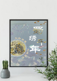 设计思路:蜀绣距今已有3000来年的历史,所以我选用了”蜀绣千年”为主体,对文字我使用了蜀绣和白色进行填充,使文字变化丰富。”白色“在我心中是纯洁的,神圣的,海报的背景我采用了一张蜀绣图。这张蜀绣图的内容涵义很好,上半部分是枝头上的鸟儿,下半部分是海浪,让我不禁想到一句诗:长江后浪推前浪,一代更比一代强。我相信蜀绣会永久流传下去,后人的技艺会越来越精湛。