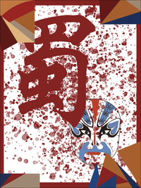 在创作过程中先将底色调整为蓝色,再将四个角一次进行勾线和选区,在制作面具的过程中是最为有趣的部分,仔细欣赏了许多川剧脸谱,演绎了生活各色。将字与图的结合实现了文字美与形式美的结合。