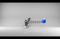 导轨电机带动履带轮在履带上运动确定其清扫位置,丝杠上下转动带动剪叉链顶端方向运动,剪叉链收缩带动前端壳运动将大棚上面的积雪清除,从而达到清理曲面内任意位置积雪的效果。