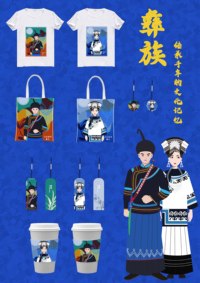 这副作品名叫兹玛格尼,在彝人语言中是吉祥如意,健康美好的意思,作品插画是参照少数民族彝族的特色服装所绘制的扁平风风格的插画,这副插画运用到来产品的包装盒上,和书签,具有民族风格的特色,符合男女老少的审美,受益面广,也能从作品中体现出中国民族工匠艺术,这幅图绘制中将人物服装一比一拟人化绘制,颜色还原了服装本身颜色,整体服饰色彩较为丰富,款式变化多姿,并且以大量银制品和作刺绣装饰。彝族妇女上身会穿镶边或绣花的上衣,头上会有包头和耳环,下身会穿裤脚绣着精致花边的长裤;背景抽象的用的山,草,河流,这些自然景物也是凉山山地的地理特色。女性人物的动作双手自然下垂,眼神轻轻的转动显现出女性的柔美,男性双手握拳,眼神坚定展现出男子的刚劲。这幅作品商业价值在于商品包装和文化宣传。