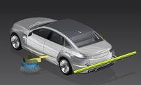 我们的大学校园地面清扫机原型是可承载俩人的越野车,与一般越野车不同,在车的俩侧我们增加了圆形旋转扫帚对地面进行清扫,扫帚能将垃圾集中清扫到一侧,在后排位置我们改造成与前排隔绝的水箱,水箱中是地面清洁液,在车的尾部连接水管,在水管下方接四个水喷枪对地面进行冲洗。