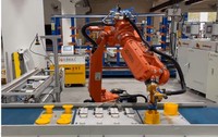 该微电机装配系统由工业机器人、AGV小车、托盘流水线、装配流水线、智能相机和码垛机立体仓库等六大系统组成。工艺流程为:码垛机从立体仓库中取出工件放置于AGV机器人上部输送线,通过AGV机器人输送至托盘流水线上,通过视觉系统对工件进行识别,然后由工业机器人进行装配。装配过程中需要识别抓取和装配的工件。装配完成后,再反向入库。装配系统在设计时充分考虑了产线的柔性,在满足装配产品外形尺寸限制的条件下,只需要更换产线的工装夹具,修改机器人程序、机器视觉识别脚本即能完成不同电机产品的装配制造。