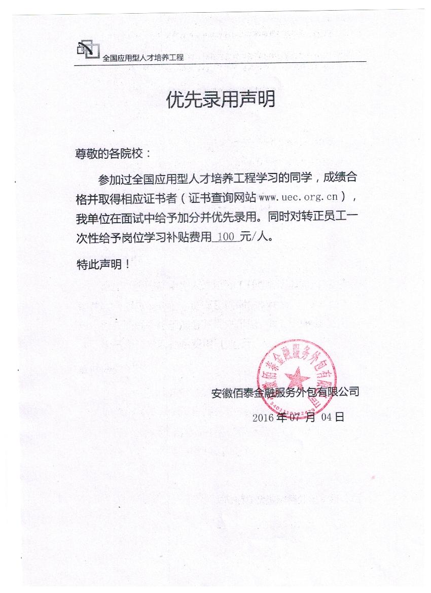 安徽佰泰金融服务外包有限公司是由上市公司四川金投金融电子服务有限公司发起,联合安徽省佰年金融设备有限公司参股投资成立,落户于安徽省合肥市,是安徽省金融外包领域内最大的专业运营商,在安徽省六安、安庆、马鞍山、淮北、阜阳、亳州、蚌埠等城市都已开展了相关项目。公司主要经营业务:现金清分整点全流程服务外包、ATM清机加钞全流程服务外包、出纳机具及银行电子设备维修服务管理外包、POS设备全流程管理服务外包、档案集中托管服务外包、业务档案影像化全流程处理服务外包等。